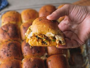 -Pump out the garlic butter topping in circles on top of the buns (makes 16-18).