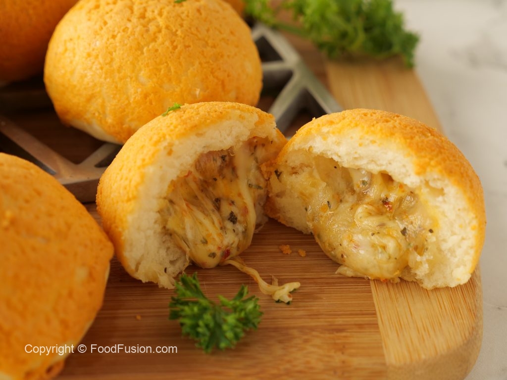 -Place herbal cheese ball in the center of rolled dough,apply water at the edges,gather all the edges,pinch & seal & make a round ball.