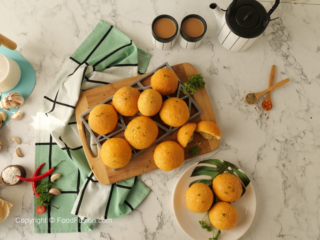 -Garlic butter topping ko buns ka upper circles mein laga lein (makes 16-18).