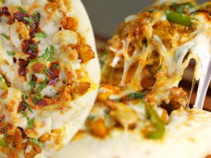 Chopper mein lehsan dal ker coarsely chop ker lein.