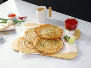 -Heat griddle,place paratha,add clarified butter & fry on low flame from both sides until golden (makes 8).