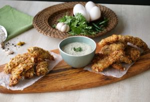 Chicken tenders ko mayo yogurt sauce ka saath serve karein!