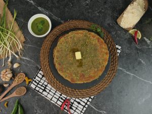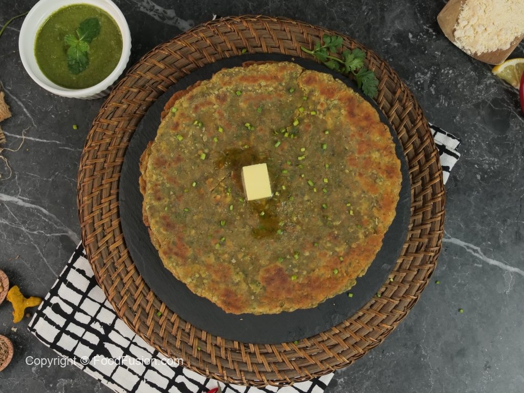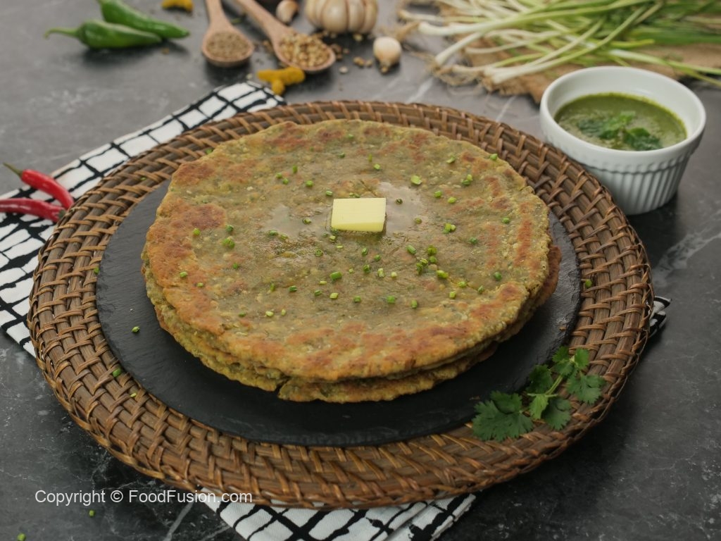 Hara lehsan aur makhan laga lein aur green chutney ka saath serve karein.