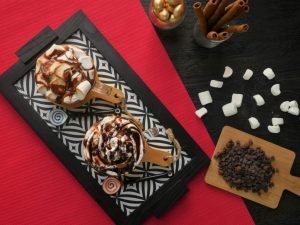 In serving cup,add caramel hot chocolate,marshmallows and burnt with blow torch.