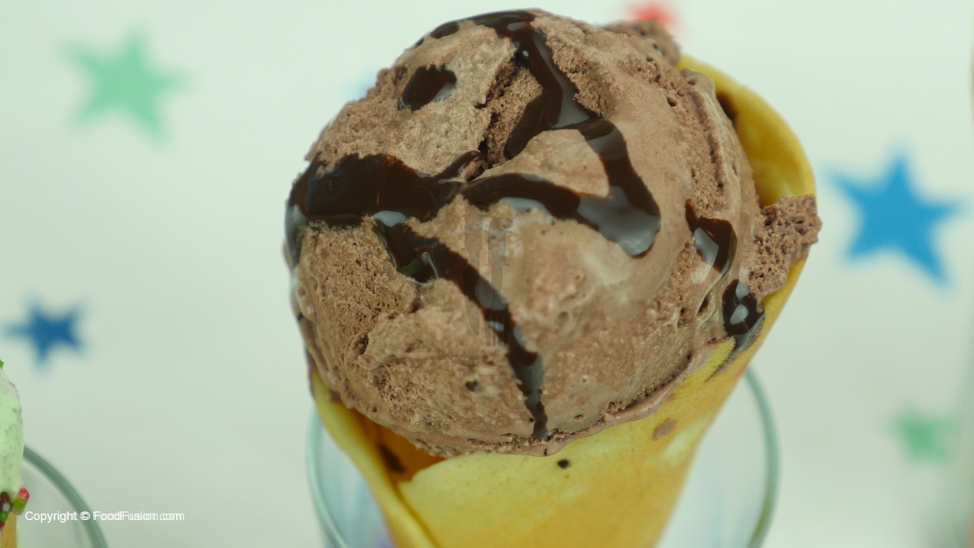 Now dip prepared cone into melted chocolate,multi sprinkles,add ice cream scoop and garnish with multi sprinkles,bunties and chocolate sauce.