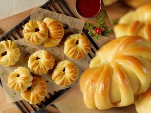 -Thora thora ker ka khameer mixture shamil karein aur ghond ker dough tayyar ker lein.