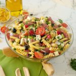 -Add red bell pepper,cucumber,black olives,green olives,cherry tomatoes,capsicum,beef pepperoni, onion,cottage cheese,fresh parsley and toss well.