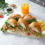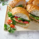 -Tayyar pesto,mortadella slices,cheese slices,tamatar,rocket leaves,olive oil,pink salt aur kali mirch powder dal dein aur top bread se cover karein.