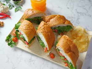 -Oregano bread ko beech se horizontally cut karein.