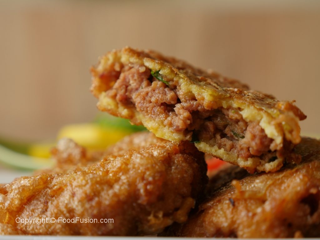 In wok,heat cooking oil and fry kabab on low flame from both sides until golden brown while pouring whisked eggs on each side of kababs.