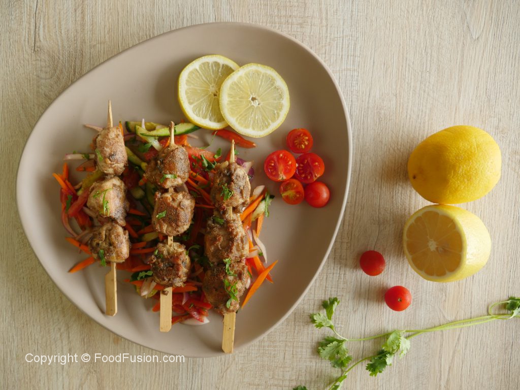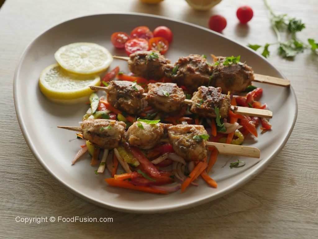 Kasturi chicken skewers ko salad ka saath serve karein.