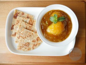 In frying pan,add raw mangoes,cover and dry roast on medium heat until pulp is soft,turn sides occasionally,peel off skin and take out the raw mango pulp.