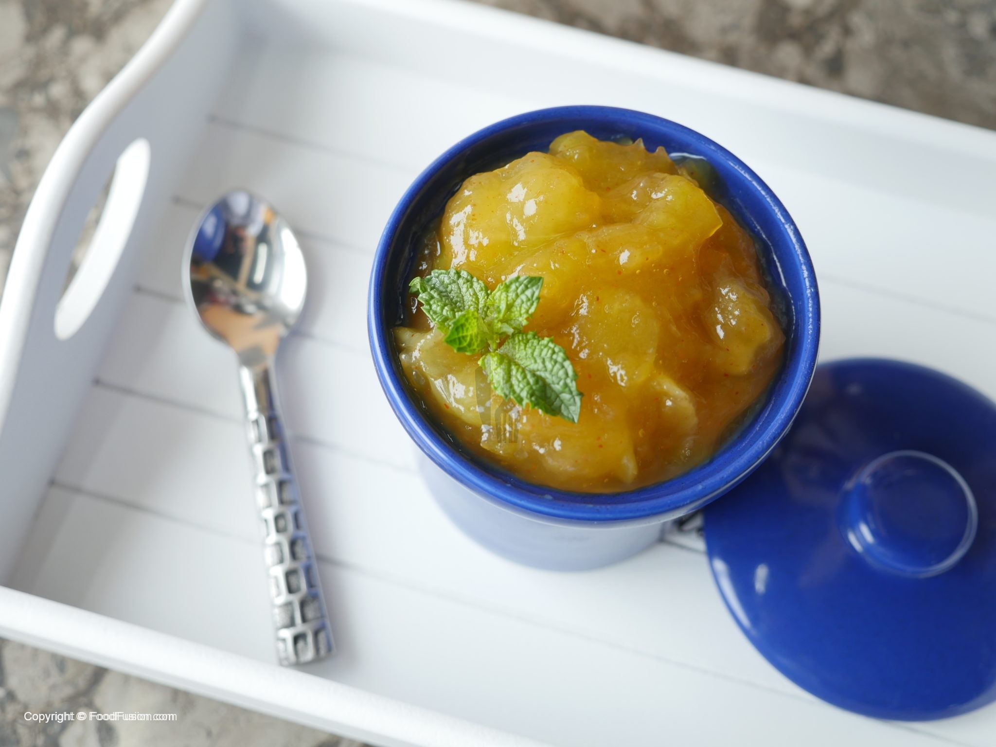 In raw mango pulp,add sugar,red chili powder,salt and water,mix well until sugar is dissolved.