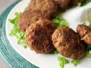 -Grease hands with oil,take a small quantity of mixture (50g),make a ball & flatten on your palm,add prepared filling,cover properly & make kebabs of equal sizes (makes 11-12).