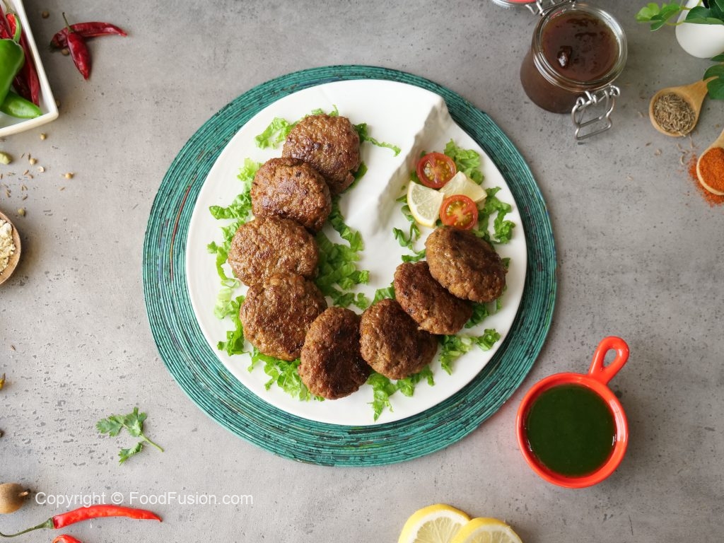-Chopper mein beef,dahi,fried pyaz,besan,namak,lal mirch powder,zeera,meat tenderizer,haldi powder,garam masala powder,elachi powder,jaifil powder,javitri powder dal ker ache tarhan chop ker lein aur 2 hours kliya marinate ker lein.