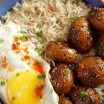 -In a serving bowl,add korean rice,korean potatoes & fried egg.