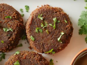 Grease your hands with oil,take a mixture and make kababs of equal sizes (makes 16).