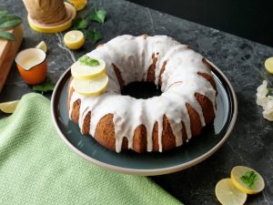 Drizzle prepared lemon glaze over top,letting it drip down the sides.