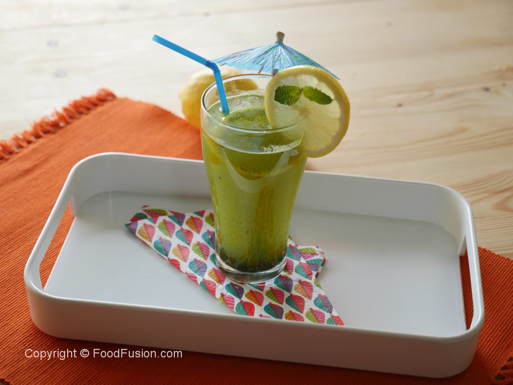 In blender,add  mint leaves,sugar,lemon juice,water and blend until well combined.