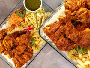-Ab blended lehsan wala pani,lal mirch powder,zeera,karahi masala,haldi powder aur sabut dhania dal kar achi tarah mix karein.