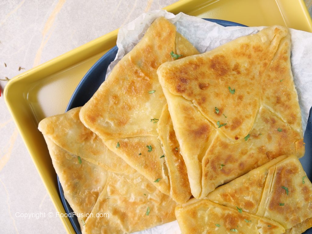 -Tawa garam karein aur makhan sa grease ker lein,lifafa paratha rakh dein aur darmiyani ancch per dono sides sa golden ho janay tak fry ker lein (makes 4) & serve karein!