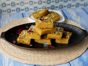 Chandi warq aur pista sa garnish ker ka gently press ker lein.