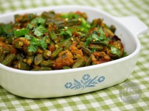 In pot,add oil,okra and fry for 4-5 minutes and set aside.