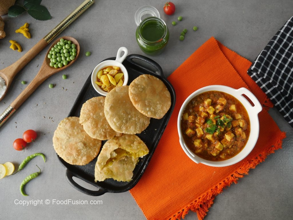 Matar kachori ko paneer tarkari ka saath serve karein!