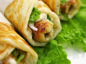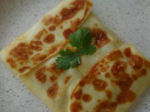 -On one rolled dough, spread mayonnaise, prepared chicken filling, mix cheese, prepared hot mustard sauce (1 tbs) & place another rolled dough over it & seal properly.