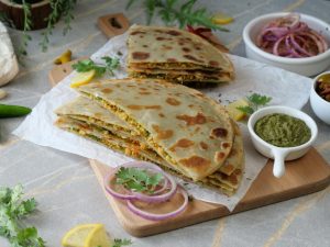 -On a griddle, add cooking oil & heat it, fry paratha on medium flame until golden on both sides (Makes 4-5).