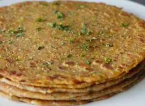 Knead dough again,take a small dough,grease hands with oil and make a ball,sprinkle dry flour,add & spread cooking oil and roll out with the help of rolling pin.