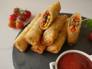 Option no 2: Air fryer machine mein mexican rolls rakh ker oil sa grease karein aur 180 C per 10 minutes kliya air fry ker lein.