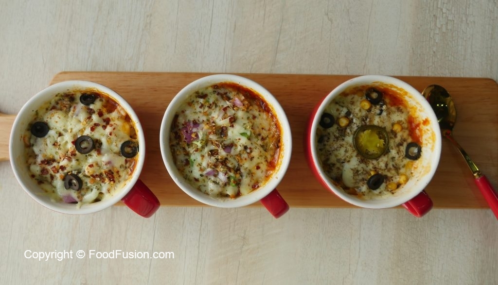 Make Microwave Mug pizza 3 ways. Both kids and adults will love it and the best part is that you can make it in 5 min. #HappyCookingToYou #FoodFusion