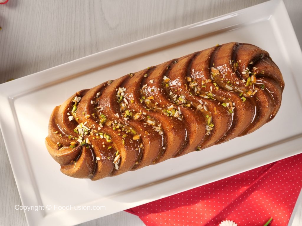 -Grease 13x5” ceramic bundt baking pan with butter & dust with all-purpose flour & set aside.