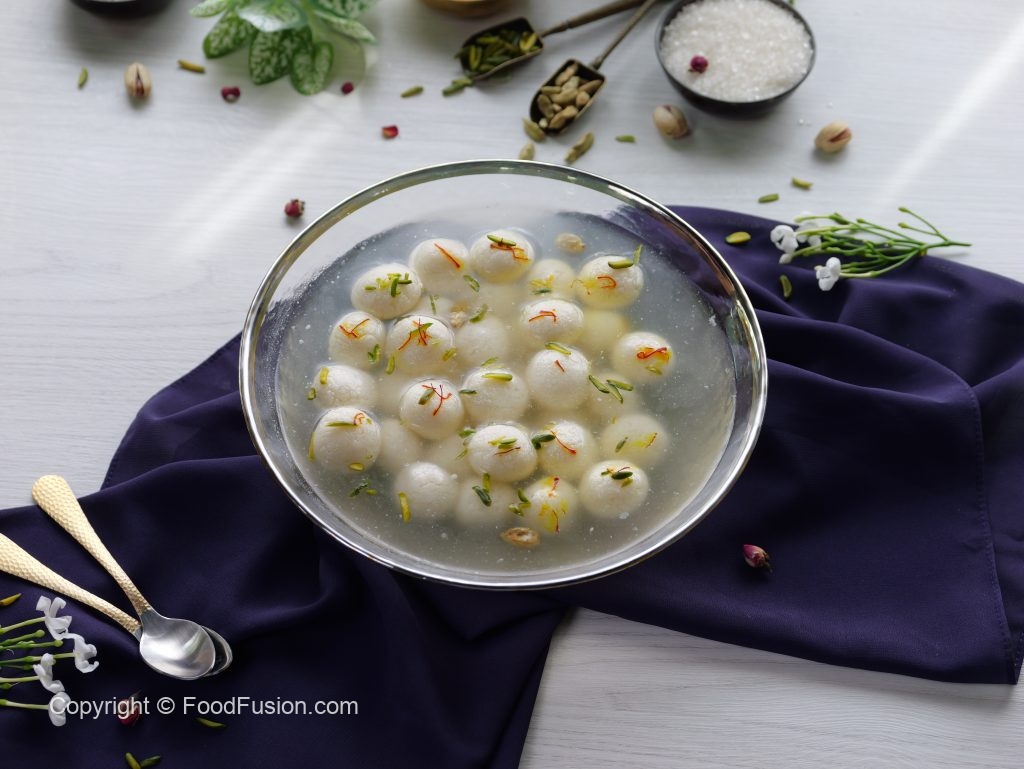 -On low flame,add mini rasgulla balls in sugar syrup & cook on medium flame without stirring for 3-4 minutes,cover & cook for 8-10 minutes or until double in size.
