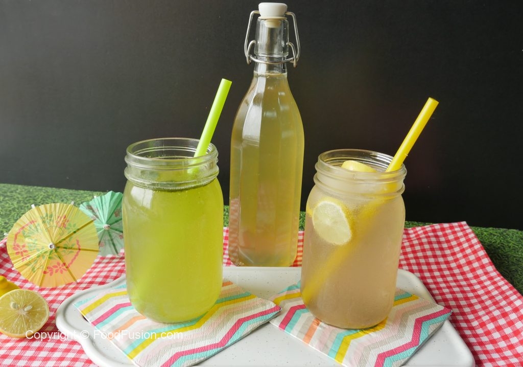 In glass jar,add prepared lemon squash,water,cumin seeds,black pepper powder,black salt and mix well & serve!