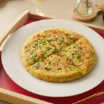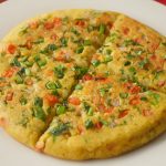 Shimla mirch,tamatar,pyaz aur hara dhania dal ker gently press karein aur flip ker lein.