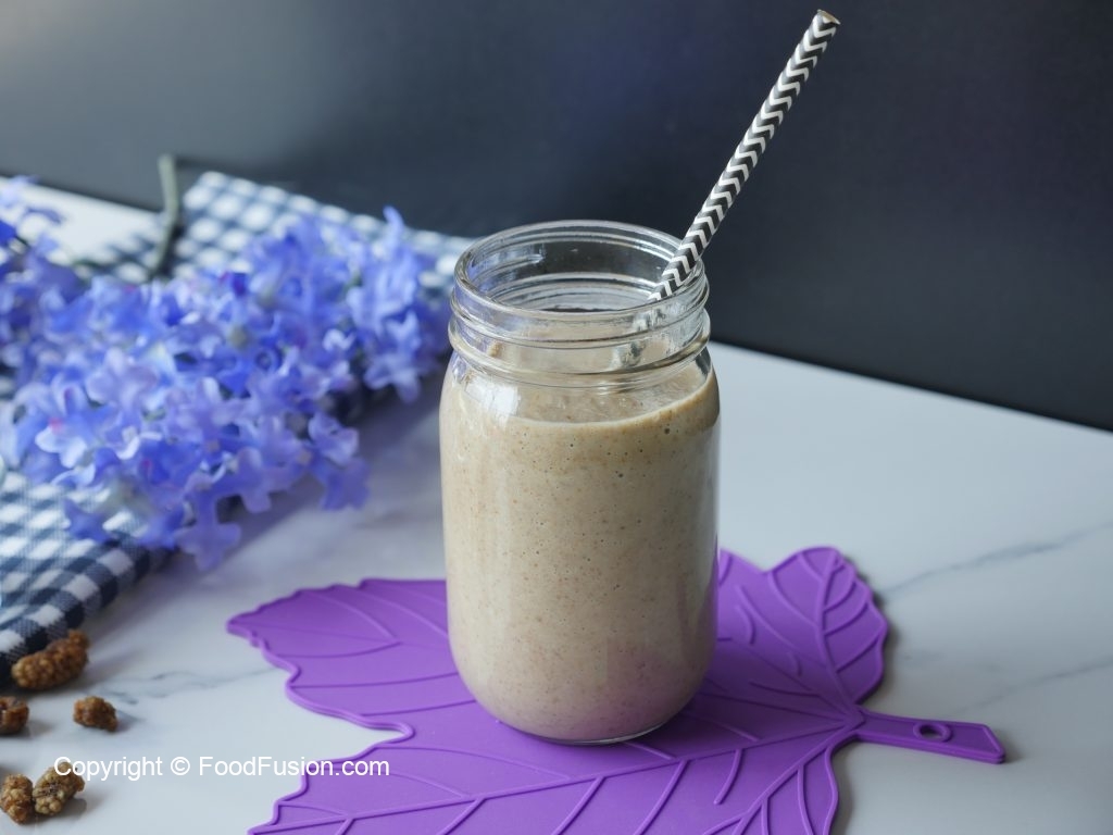 Blender jar mein soaked mulberries aur doodh dal ker ache tarhan blend ker lein & serve karein!