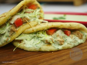 Cover one side of naan, pierce the tooth pick and serve with chutney.