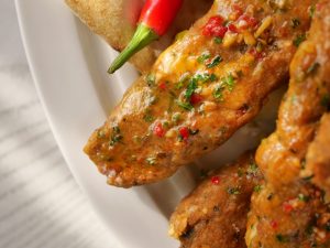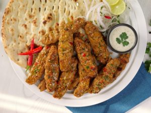 -Apply prepared spicy butter on both sides of seekh kababs & continue cooking on grill+combination for 5-6 minutes or until kababs are done (makes 12-14).