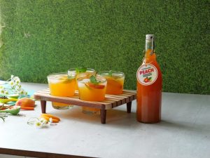 -Jug mein thanda pani (3 cups) aur peach squash (1 cup) dal kar ache tarhan mix karein.