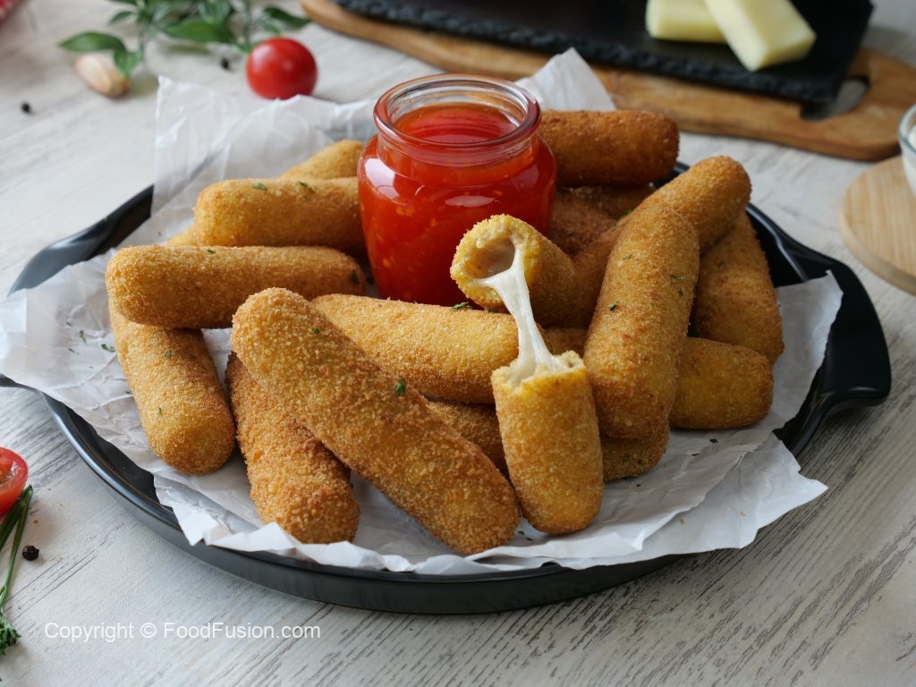 -Place mozzarella cheese stick & roll with the help of greased hand into finger shape stick then seal the edges.