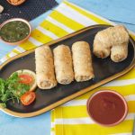 In a wok,heat cooking oil and fry potato samosa roll on low flame until golden.