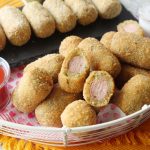 -Ab fried sausage rakh dein aur aloo mixture sa cover ker lein & ek jaisay sizes ka croquettes tayyar ker lein.