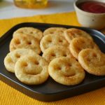 Cut into round shape with the help of the cutter,dip straw in cornflour and make eyes by using straw and use spoon to make a smile & refrigerator for 30 minutes (makes 19-20).