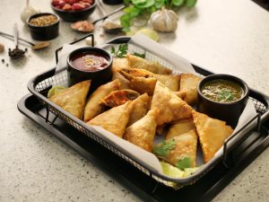-In a wok,heat cooking oil (150°C) & fry samosa on medium low flame until golden & crispy.
