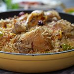 -Green chillies, orange food color, fried onion, lemon slices, fresh coriander, mint leaves dalain, phir kitchen cloth aur lid se cover kar ke dum par 10-12 minutes paka lein.