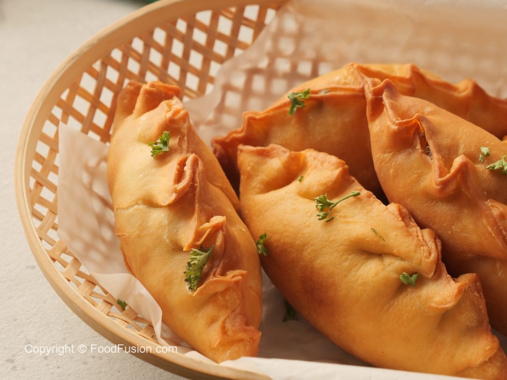 -Tayyar filling (3 tbs) dal dein,edges per pani laga lein aur dough ko lift ker ka press karein aur filling ko seal ker ka pinch & seal ker lein (makes 12-14).