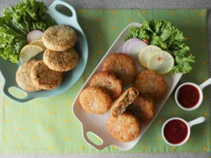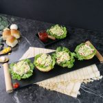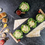 -On each air fried/toasted burger bun,place lettuce leaf,prepared chicken salad & garnish with cucumber & serve! (Serves 6-8)