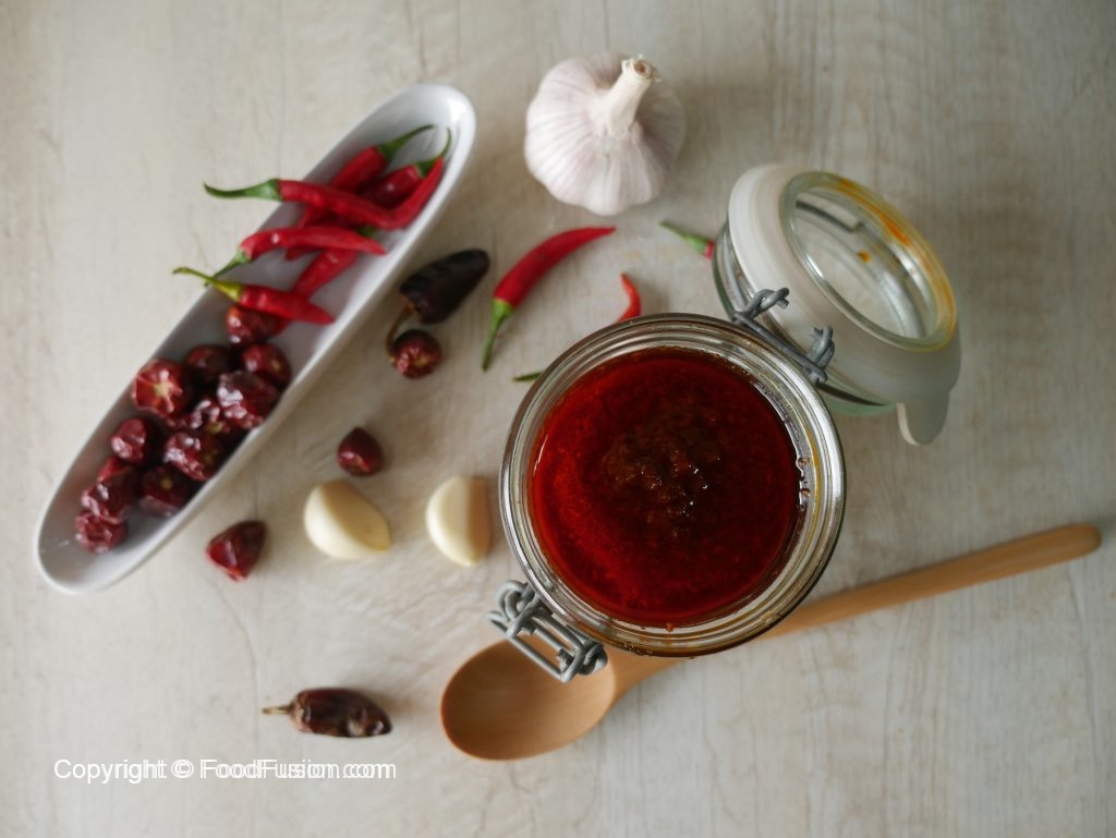 Now add prepared red chili paste,mix well and cook until oil separates (3-4 minutes) & set aside.
